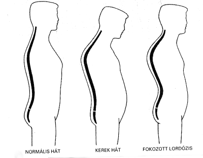 A helyes (fiziológiás) testtartást valószínűleg mind­nyájan ismerjük. Nehéz azonban a kóros testtartás meghatározása. Mikor mondható a testtartás helyes­nek, ill. mikor rendellenesnek? A következő szempon­tokat vehetjük figyelembe: tekintsük meg a vizsgált személy hátát hátulról nézve, ekkor a gerincnek pon­tosan középen kell lennie. Ez viszonylag egyszerű meghatározás. Ezután nézzük meg a vizsgált személy hátát oldalról nézve is, ekkor a gerinc a már ismert jellegzetes kettős S alakot mutatja. Itt kezdődik a probléma. Mekkora lehet a görbület, amíg azt mond­hatjuk, hogy ez még normális? A gerinc természetes kettős S alakú görbülete és a fokozott görbülettel járó kifolordotikus (homorú) hát közötti különbség tulajdonképpen csak annyi, hogy az utóbbi esetben a háti és az ágyéki gerincszakaszon levő görbületek kifejezettebbek.