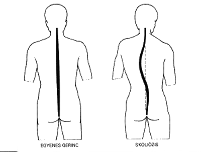 hátulról vizs­gálva a gerincet, könnyen felismerhetjük. A gerinc normálisan a fejtől a farkcsontig teljesen függőleges lefutású. A gerinc oldalirányú elhajlását nevezzük skoliózisnak. Skoliózis esetén a fő problémát az je­lenti, hogy a folyamat – ha már gyerekkorban kiala­kult – hajlamos arra, hogy a növekedés alatt tovább rosszabbodjon. A gerinc jelentősebb megrövidülése következtében a vállöv elferdül és a medence félrebillen. Általában az tűnik fel, hogy a ruha nem jól áll. Vagy a pulóver rövidebb az egyik oldalon vagy a nadrág dereka áll egyik oldalt magasabban. Ha ilyen gyanúnk van, nézzük meg a gerincet hátulról. Ha nem vagyunk benne teljesen biztosak, hogy a gerinc ferde-e, akkor kérjük meg a vizsgált személyt, hogy hajoljon előre. Ebben a helyzetben a gerinc oldalirányú elferdülései sokkal jobban megállapíthatók.